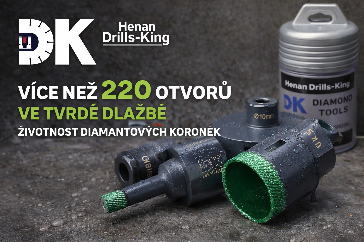 Sada diamantových korunek Drills-King + centrovací šablona (PLAST)
