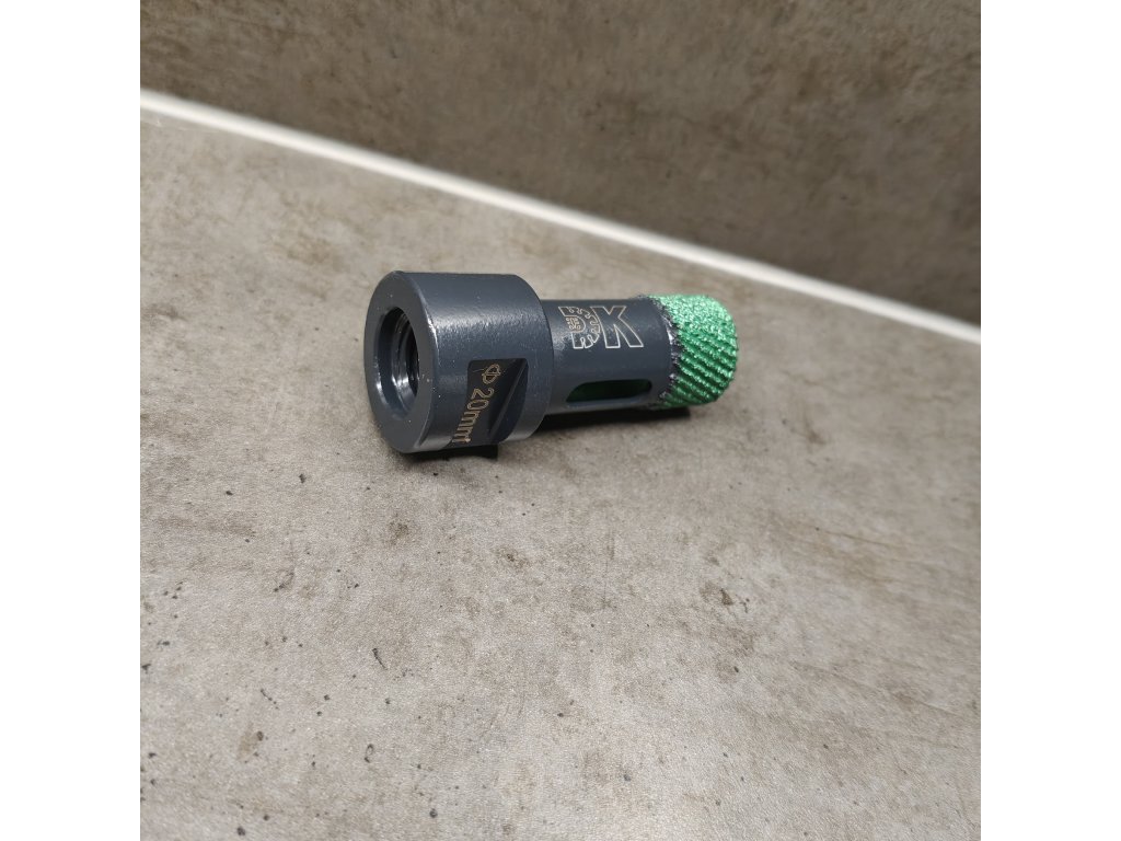 Vysoce kvalitní diamantová vrtací korunka s průměrem 20 mm, určená pro profesionální vrtání do tvrdých materiálů, jako jsou: