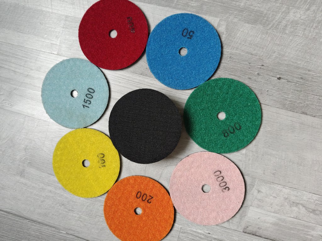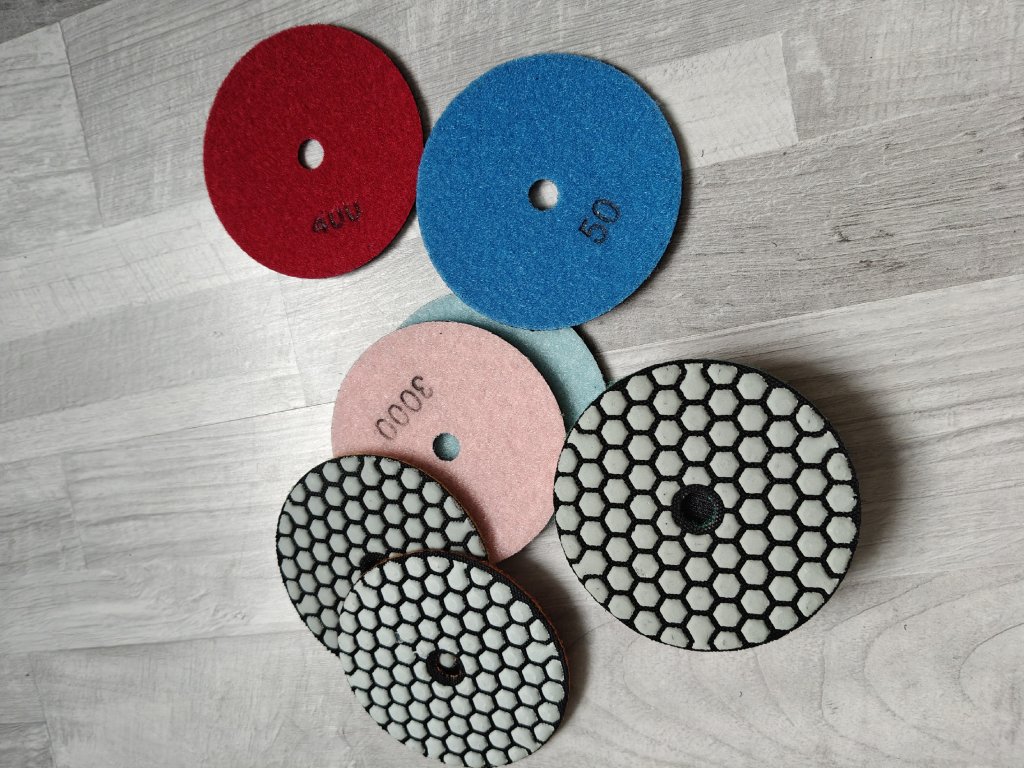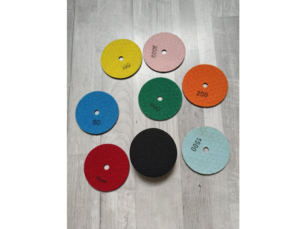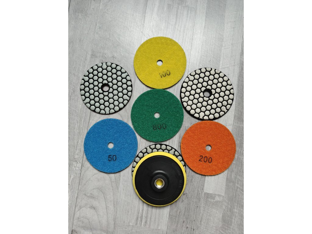Profesionální sada diamantových lešticích kotoučů určená pro broušení a leštění kamene, keramiky, betonu a dalších tvrdých materiálů.