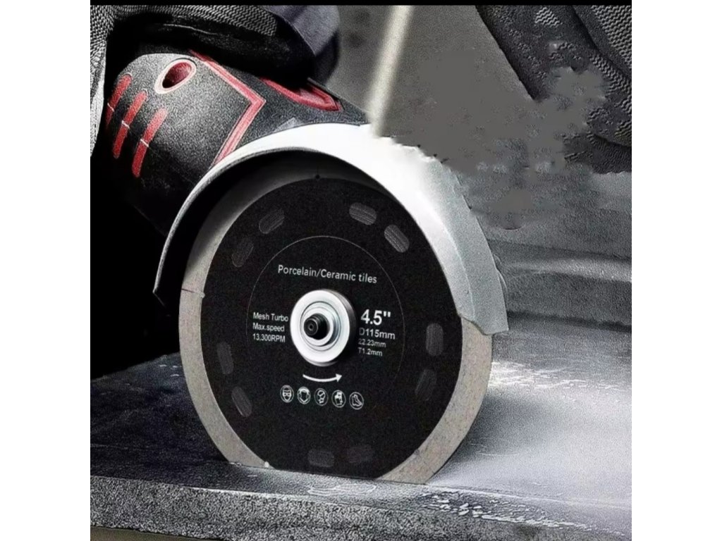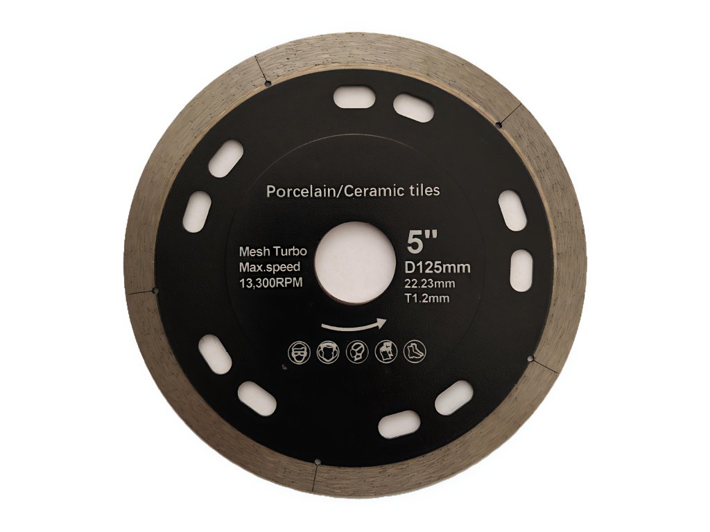 Popis produktu: Profesionální diamantový kotouč o průměru 125 mm (5") určený pro řezání porcelánu a keramických obkladů. Díky turbo síťovanému segmentu (Mesh Turbo) zajišťuje čistý, přesný a rychlý řez bez odštěpů. Ideální pro suché i mokré řezání.