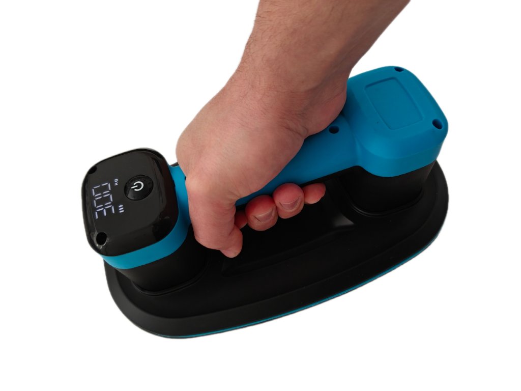 Materiál: nylon + guma Baterie: 3600 mAh (2× 1800 mAh) Gumový kotouč: průměr 260 mm, tloušťka 20 mm Max. podtlak / Nosnost: až 300 kg Napájení: USB-Type-C Doba nabíjení: 3 hod Doba práce: až 45 h Výdrž v klidu: 7 dní Motory: dvojitý motor Digitální displej: síla podtlaku + stav baterie